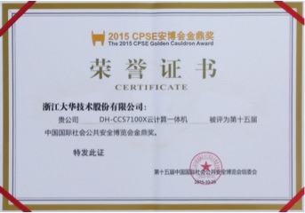 金秋十月,2015年第15届中国国际社会公共安全博览会最高奖项——金鼎奖颁奖盛典在深圳深航国际酒店圆满落幕。大华股份新推出的云计算一体机(DH-CCS7100X),以高性能的产品及创新技术的绝对优势,蝉联本届安博会“金鼎奖”荣誉称号。与此同时,大华凭借对智慧城市解决之道的深刻理解和卓越贡献,荣获“2015年第四届中国智慧城市推荐品牌”称号。
