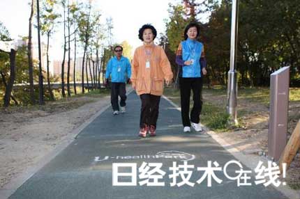 保健公园里的健康管理功能是利用RFID来实现的。具体方法是在长3.75km的河岸散步道路中埋有RFID读取器,用户将RFID卡挂在脖子上散步时,会根据用户的运动距离、步行速度及时间等自动测量运动量。