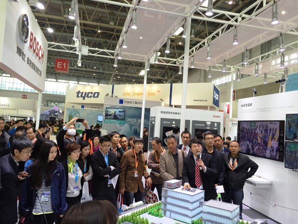 2014年10月28-31日,2014年年中国国际社会公共安全产品博览会在北京成功举办。博世安防系统此次以“智能·互联”——安防新主张为展示主题,精彩亮相E1馆E36展台,为您带来最新的技术、应用以及整体解决方案。博世安防系统视频监控产品事业部全球副总裁龙沐坤先生(Mr. Koen Rommel)、博世安防系统中国区总经理付云平先生与视频监控中国区总经理陈绮韵女士共同参观了展台,并表达了对中国市场的重视:中国仍旧是全球保持增长且极具潜力的安防市场,博世非常重视这一市场,并将持续在这一市场产品研发与解决方案等多方面的投入。