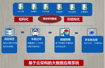 车辆大数据研判系统汇聚海量卡口数据,采用hadoop架构对“车辆、车主、关系人”属性构建数据关系网进行深度分布式的数据挖掘分析,筛选出高危车辆进行实时预警和情报推送;另一方面,车辆大数据研判系统使用大数据图像处理引擎,可实时处理海量的车辆图片,提取车系等关键信息,快速定位目标相似车辆、而不受套牌和假牌的影响。
