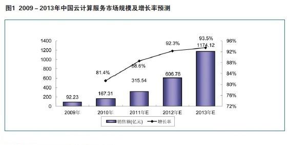 据预测,未来3年,云计算应用将以政府、电信、教育、医疗、金融、石油石化和电力等行业为重点,在中国市场逐步被越来越多的企业和机构采用,市场规模也将从2010年的167.31亿元增长到2013年的1174.12亿元,年均复合增长率达91.5%。